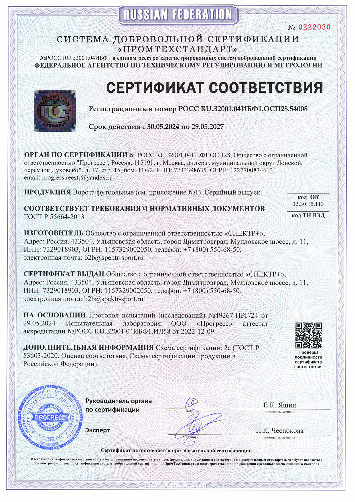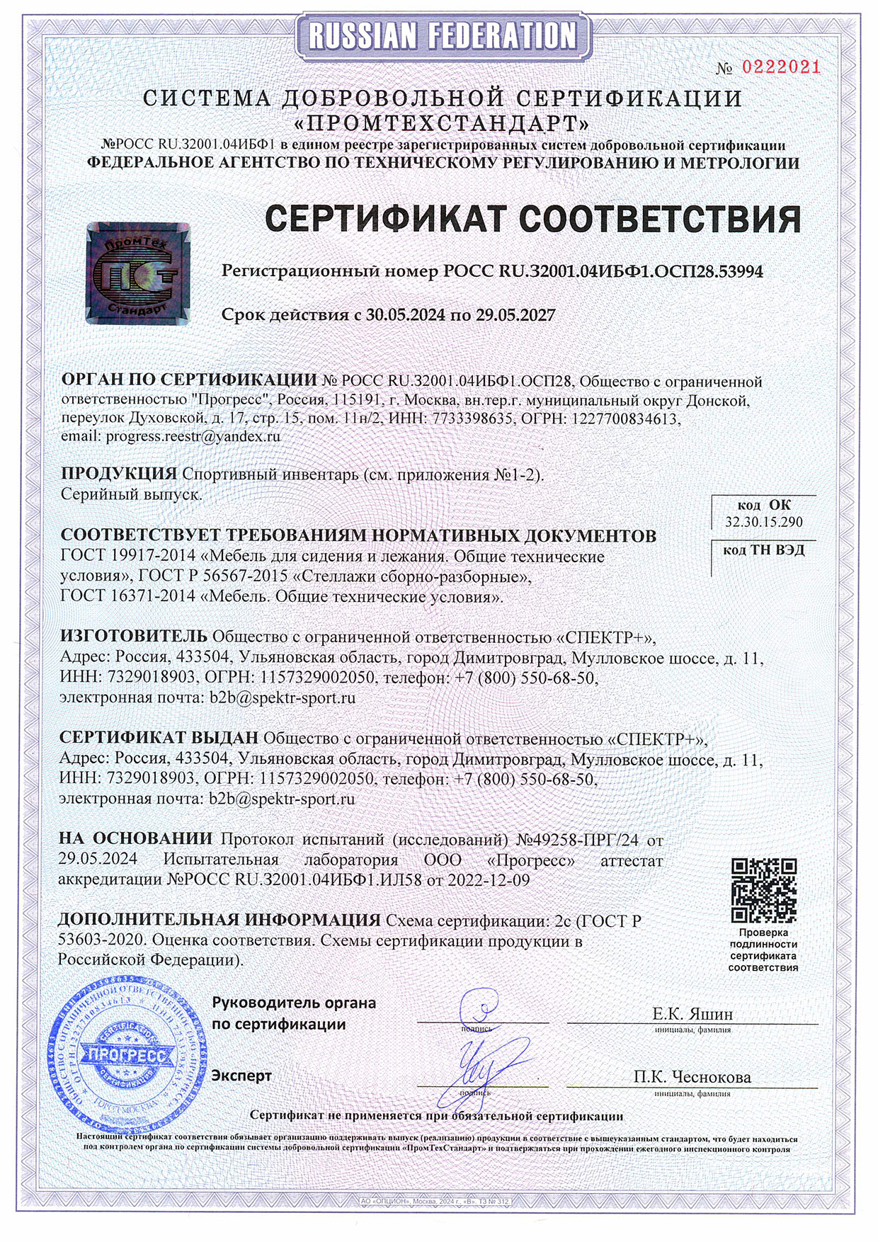 Сертификат соответствия инвентарь 2