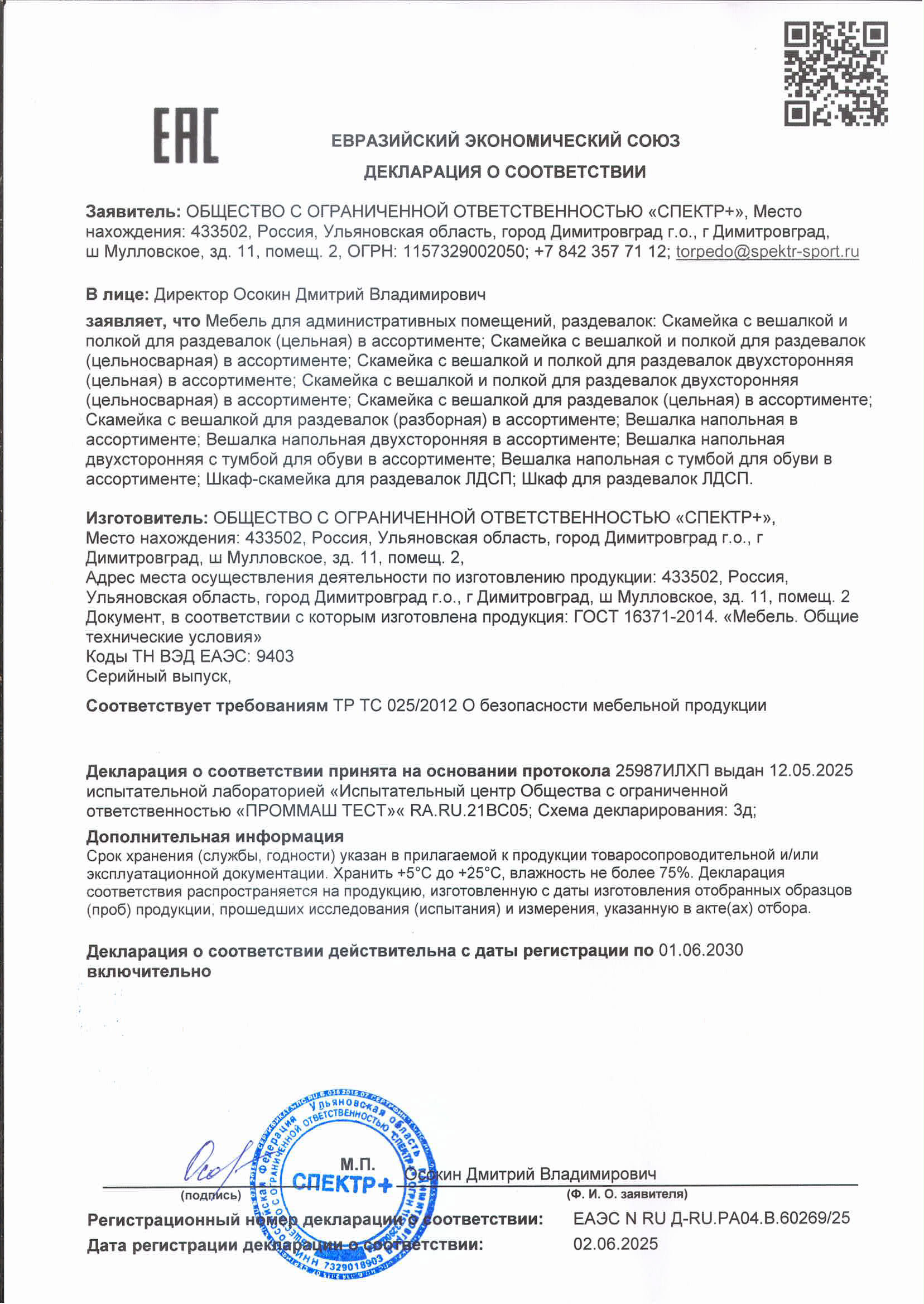 Сертификат соответствия (мебель)