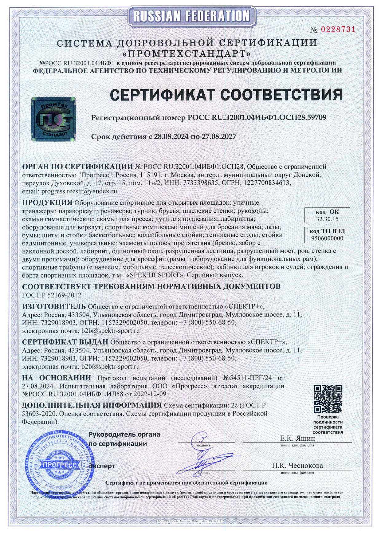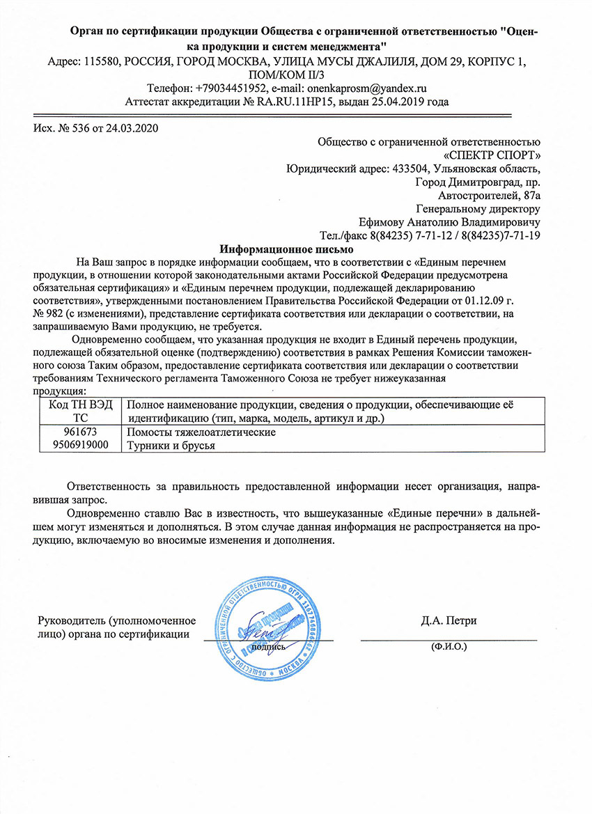 Сертификат соответствия (помосты, турники)